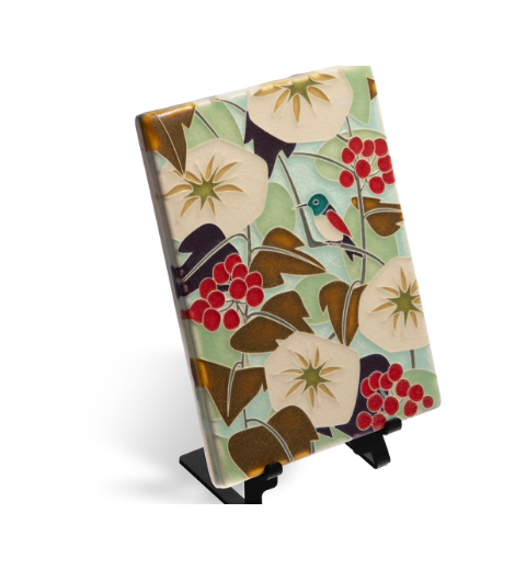 Located in Ann Arbor, MI, Motawi Tileworks makes handcrafted ceramic tile as art pieces and for residential and commercial installations. First, tile designs are etched into plaster molds. Clay is then pressed into the mold, trimmed and bisque-fired in the kiln. Each tile is glazed by hand and returned to the kiln for a final firing. With the intricate art tiles, Motawi glazers employ the centuries-old Cuenca technique, carefully filling glazes into the “basins” created by thin, raised lines in the clay. They specialize in Art Nouveau, Arts & Crafts and Midcentury Modern aesthetics.